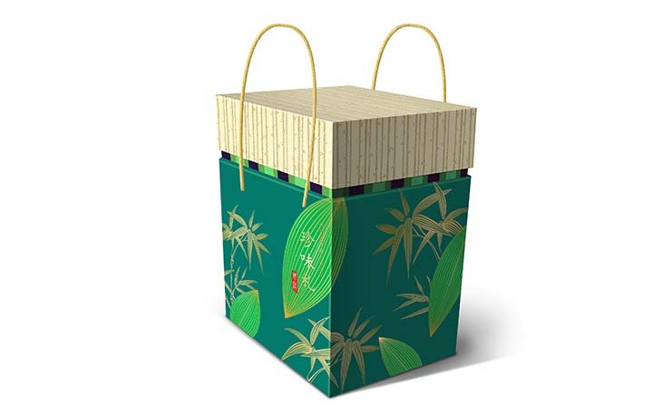 包裝禮盒設計結合當地文化,以粽葉的綠色為底色進行設計和變化,搭配以大氣高檔的禮盒盒型,運用了先進和精湛的工藝技術,紅門包裝致力于客戶和消費人群的共同滿意,滿足端午送好禮的市場需要。
